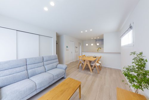 ご夫婦の両親が住む敷地内に、お子さまの成長と将来の暮らしを見据えて新築した事例です。地震に強いテクノストラクチャー工法を採用し、今も未来も安心して暮らせる住まいを実現しました。
